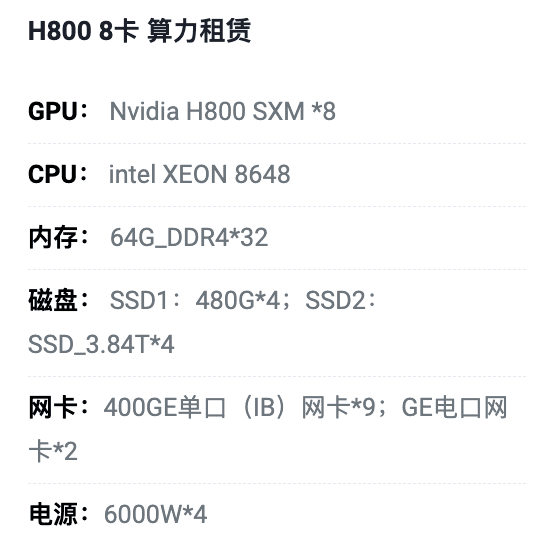 邯郸H800八卡算力租用价格